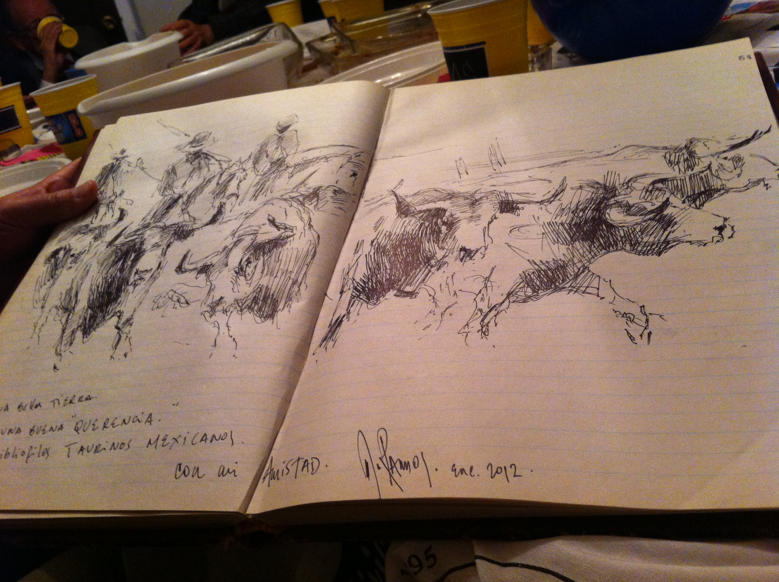 El homenaje que el pintor universal brinda al toro de lidia es increíble y nada más con contemplar en tropel ‘Moviendo el Ganado’ en dimensiones campiranas o la imperial belleza de la estampa de ‘Toros’ el espectador ya está dentro del Campo Bravo impregnado del olor a hierba mojada pero sobretodo anonadado con la esplendorosa estampa de los bureles que aún en la tranquilidad de la grama y del lienzo son imponentes y ya retan a los ganaderos en desafió para apostar en que Cabaña Brava ‘pastaran los lienzos’ para orgullo de los criadores de toros de lidia y más pues del cofre de las joyas par de cuadros sorprenden por su creatividad ‘La Ultima luna’ dedicado a los toros en la corraleta de la plaza la noche previa a la corrida y ‘De Vuelta a casa’ que da fe del indulto del toro bravo y cumplidor.