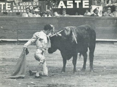 Y también de Carlos Arruza, uno de los toreros más importantes que ha dado nuestro país, conservo en la retina una tanda de faroles de rodillas que llamaron poderosamente mi atención en esos tiempos de juvenil y apasionado interés por la Tauromaquia. Y la conservo porque aquella serie de capotazos distaban mucho de lo que se acostumbraba entonces, y aún se acostumbra ahora, de aprovechar el viaje natural de la res para ejecutarlos. Arruza, en aquella ocasión, estructuró una serie de faroles en los terrenos del burel, una y otra vez, como si de una tanda de verónicas se tratara, demostrando un valor cierto y contundente.