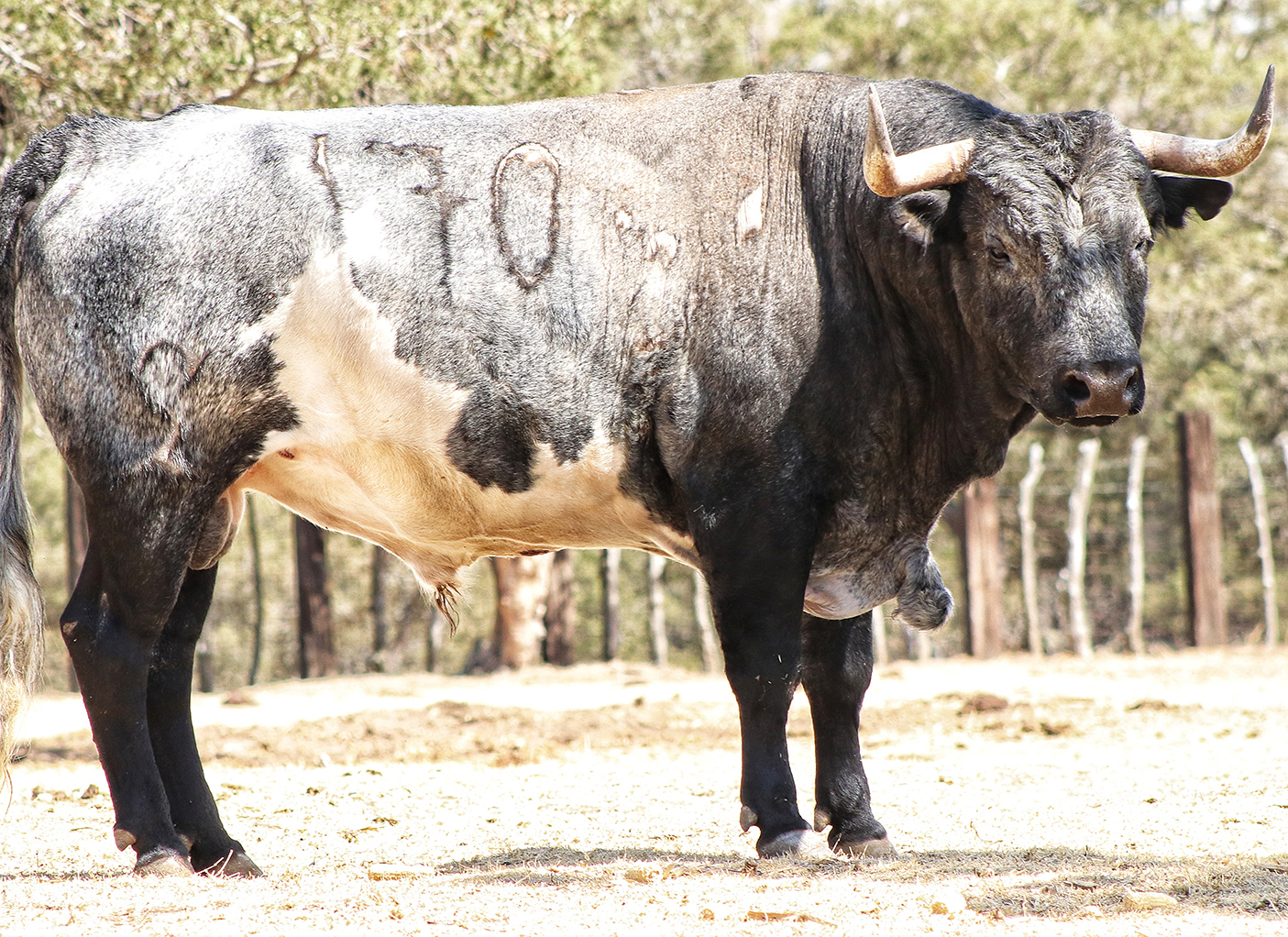 No 45 Cárdeno, bragado corrido, cornivuelto.