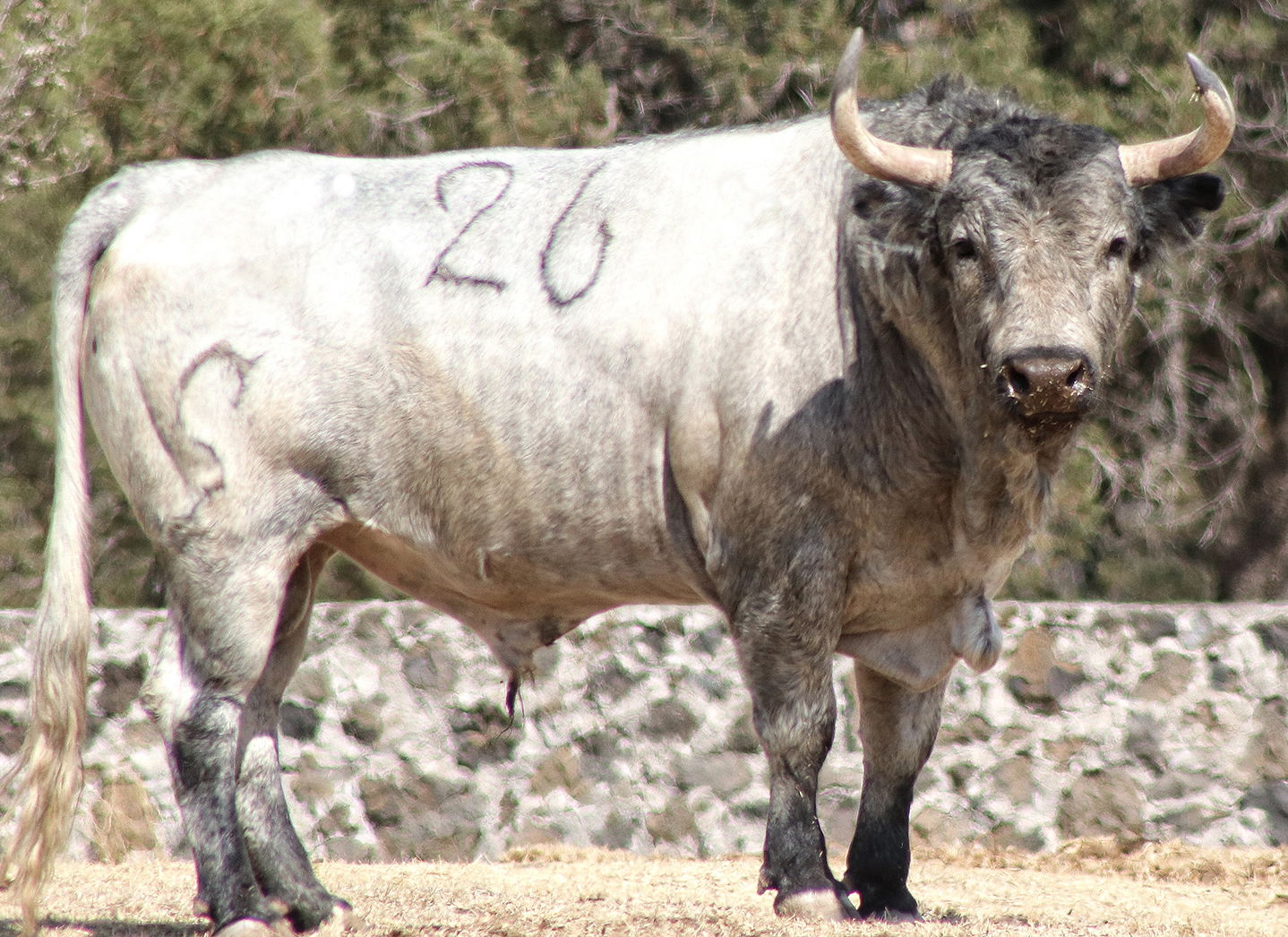 No 26 Cárdeno claro, botinero, bragado corrido, cornivuelto, Zurdo del izquierdo.